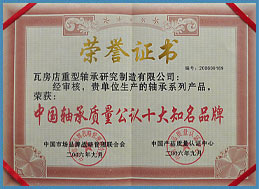 WZFB被评为辽宁省著名商标... 瓦房店天久轴承科技有限公司(原瓦房店重型轴承研究制造有限公司)全体员工本着先做人